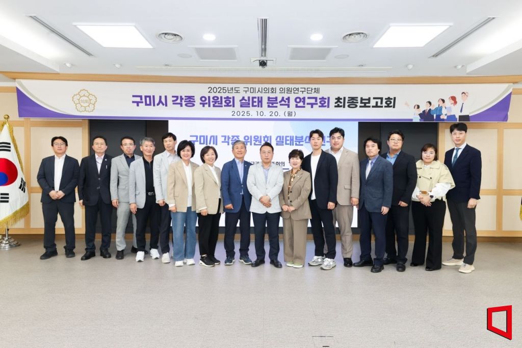 경북 구미시의회 의원연구단체인 '구미시 각종 위원회 실태 분석 연구회'가 연구·용역 최종보고회를 개최 후 단체촬영/김이환기자