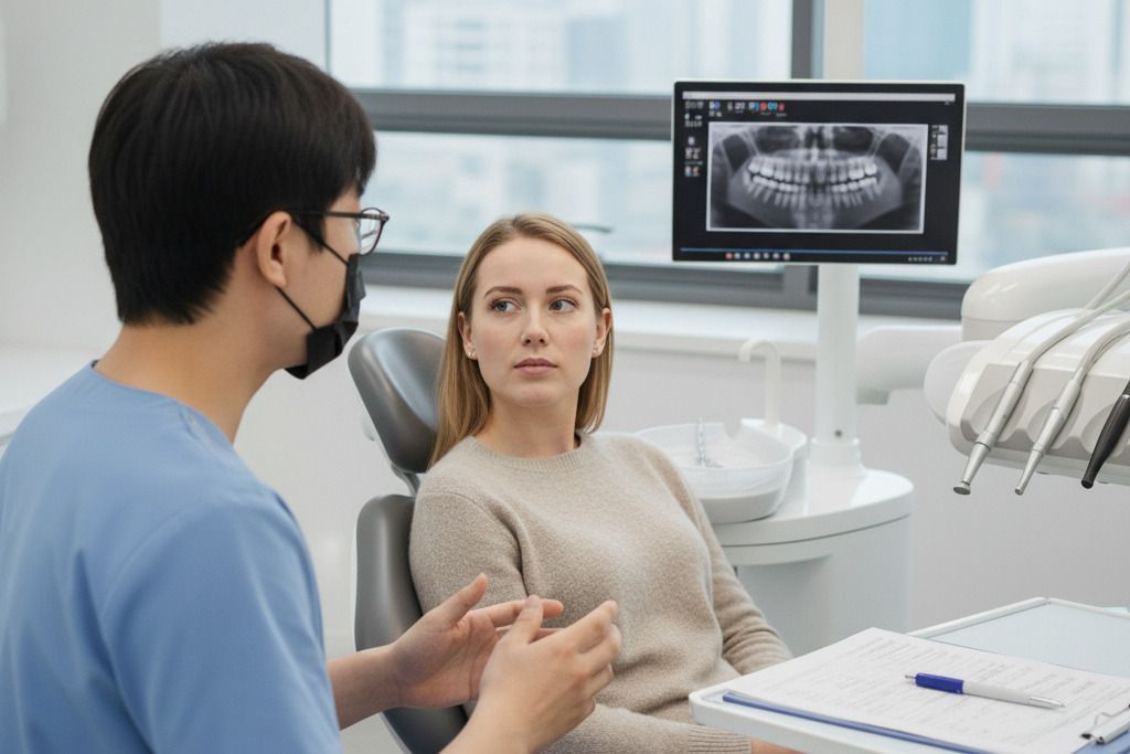 한국 치과에서 외국인 관광객이 치과 진료 상담을 받고 있는 모습(AI이미지). 크리에이트립