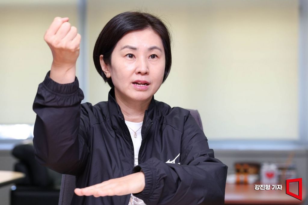 전영아 한국배구연맹 심판위원장이 15일 서울 마포구 한국배구연맹에서 인터뷰 하고 있다. 강진형 기자