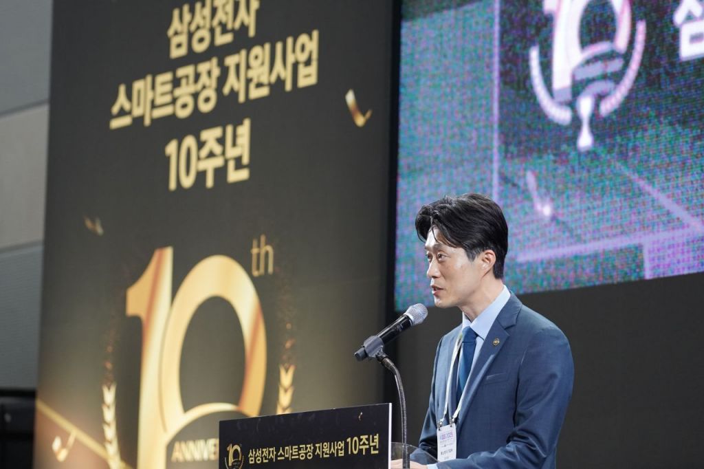 올해는 삼성전자 스마트공장 지원사업 10주년을 기념해 '제조업 혁신의 날개, AI 스마트공장'을 주제로 노 차관의' AI와 상생협력이 이끌어갈 스마트 제조혁신 3.0' 강연이 진행됐다. 관련 전문가와 기업들이 참여해 중소기업 제조AI 도입을 위한 콘퍼런스도 진행됐다.