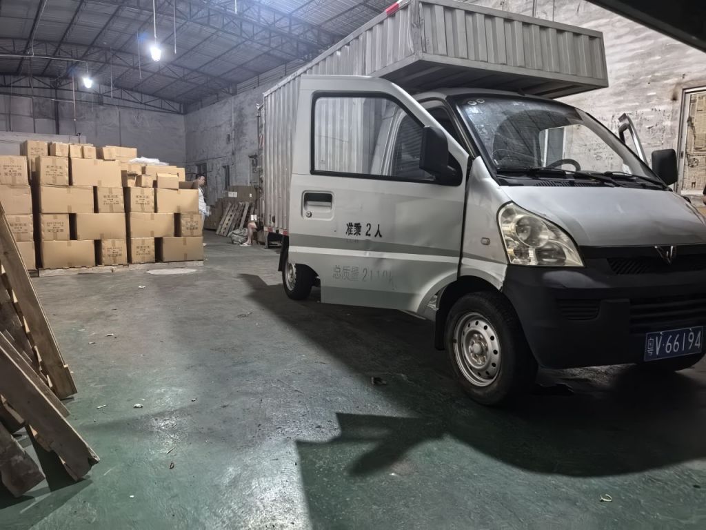 지난달 28일 오후 7시 중국 광둥성 불산시 외곽 창고에서 확보한 위조품 박스들. 위조품들은 공안이 현장에서 압수해 자체적으로 폐기한다. 다만 보안을 이유로 외부에 폐기 과정이 공개되지는 않는다. 직접 폐기가 됐는지 여부는 확인할 수 없다. IP SPACE 제공.
