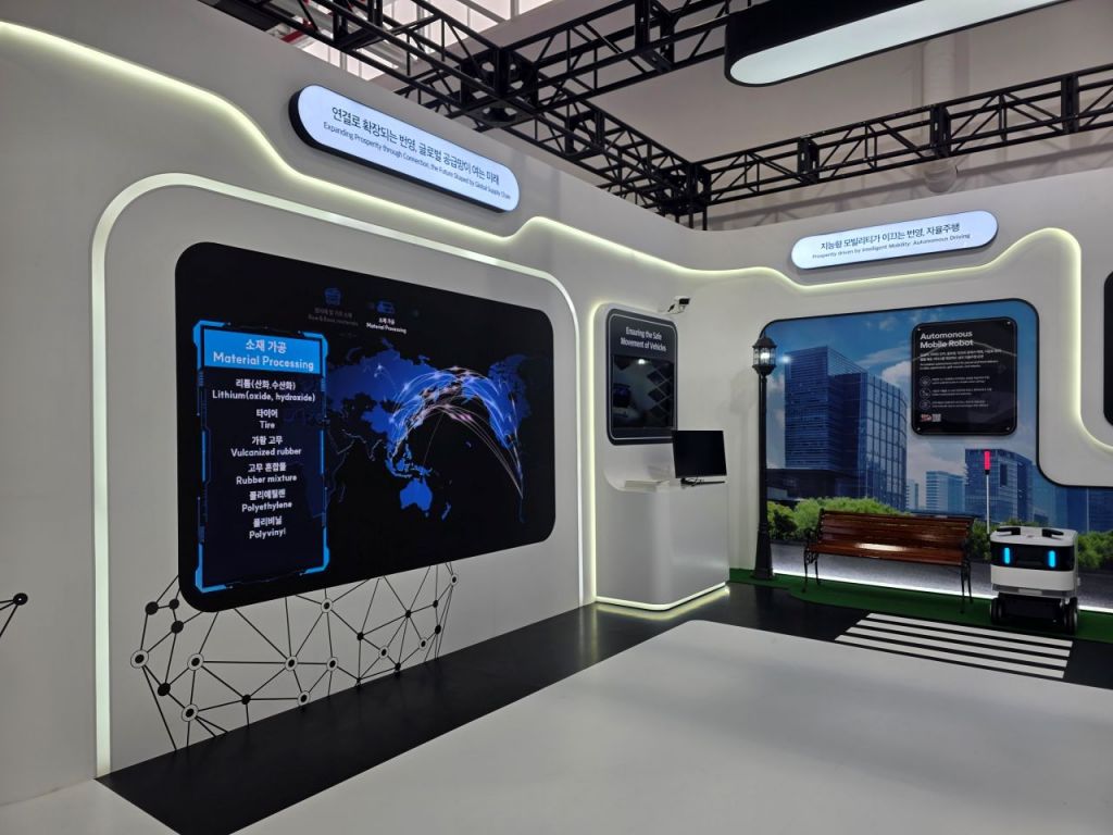 코트라는 경상북도, 경주시와 협력해 20일부터 APEC 경제전시장 ‘K-비즈니스 스퀘어’를 5주간 운영한다. ‘K-비즈니스 스퀘어’ 전시장 내부의 모습. 코트라