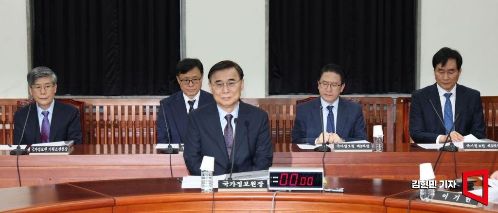 이종석 국가정보원장이 22일 서울 여의도 국회에서 열린 국회 정보위원회 전체회의에 춣석하고 있다. 2025.10.22 국회사진기자단