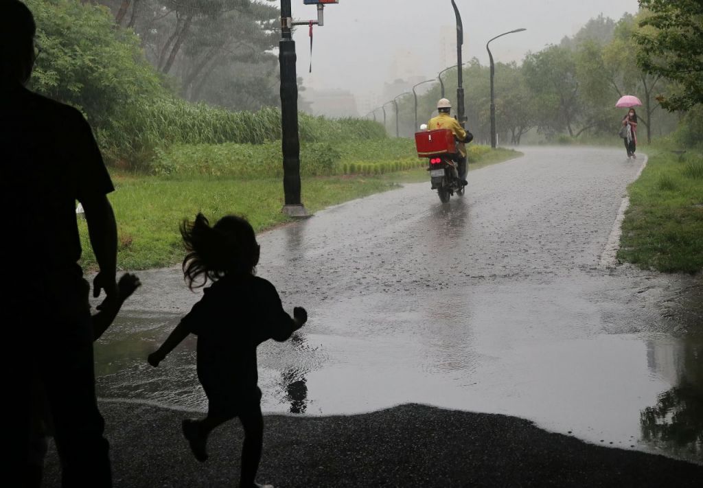 산책길에 갑자기 내린 비로 다리 밑에 한참을 갇혀 있었다. 비는 그칠 줄 모르지만, 저기 엄마가 온다. 온 가족 우산을 들고 엄마가 온다. (경기도 성남)