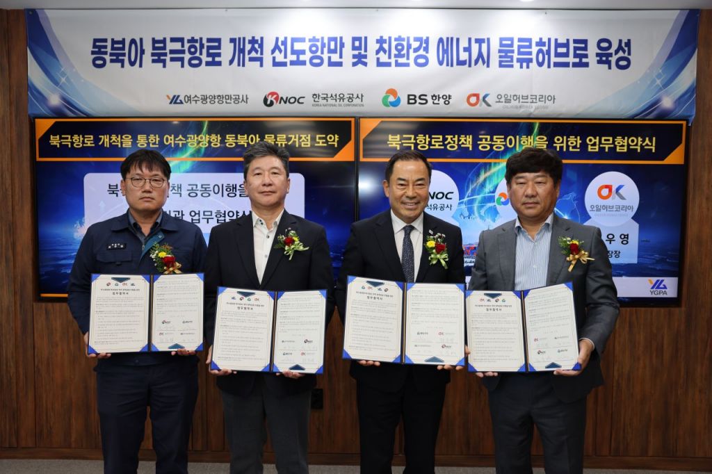 여수광양항만공사는 지난 22일 공사 본사에서 한국석유공사, BS한양, 오일허브코리아여수와 '북극항로 개척 정책과제 공동 이행을 위한 업무협약'을 체결했다. 여수광양항만공사 제공