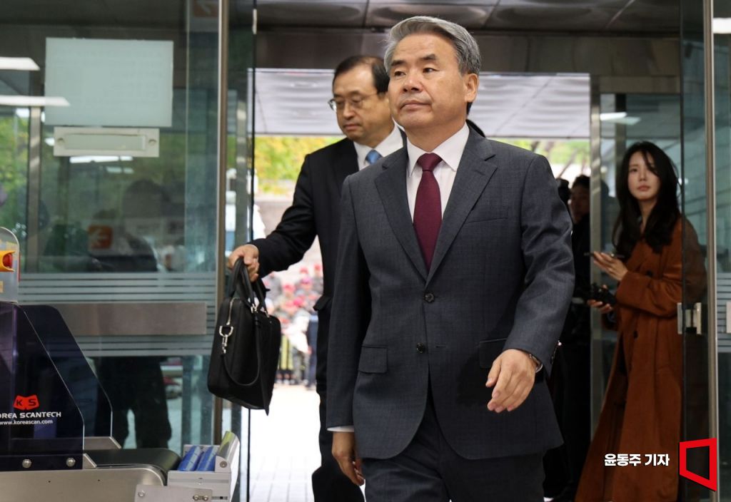 이종섭 전 국방부 장관이 23일 구속 전 피의자 심문을 위해 서울 서초구 중앙지법으로 들어서고 있다. 2023.10.23 윤동주 기자