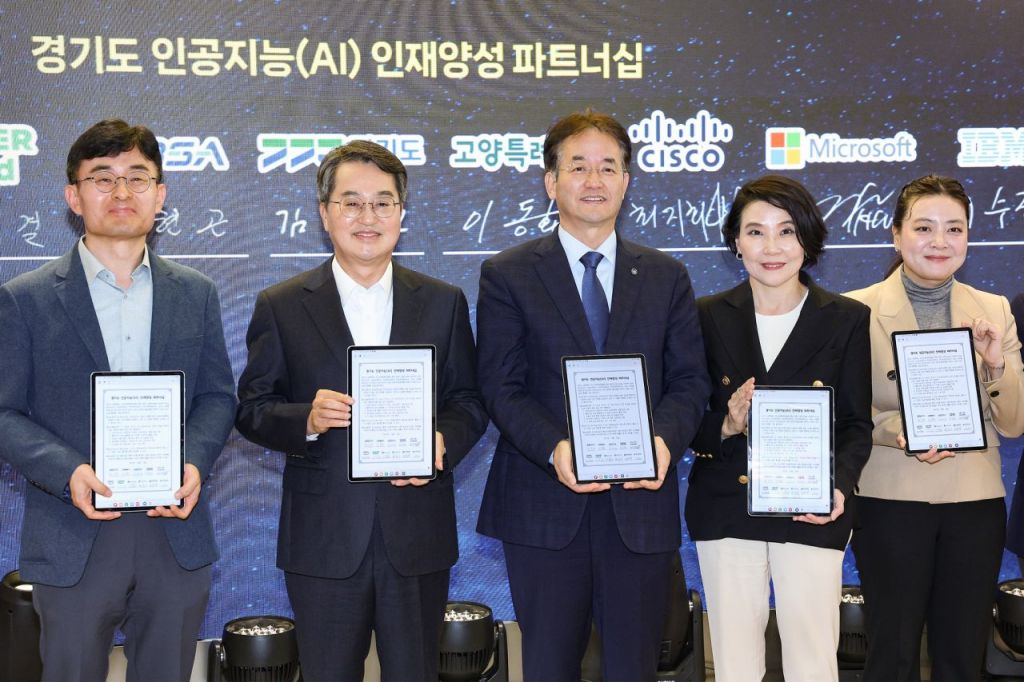 이날 개소식에서 경기도-고양시-글로벌테크기업-대학교 간 '경기도 인공지능(AI) 인재양성 파트너십'을 체결하고 AI 인재 육성과 산업 생태계 조성에 협력하기로 했다.