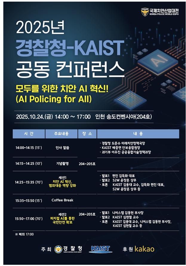 경찰청은 KAIST와 공동으로 24일 인천 연수구 송도컨벤시아에서 '2025 경찰청-KAIST 공동 콘퍼런스'를 개최했다.