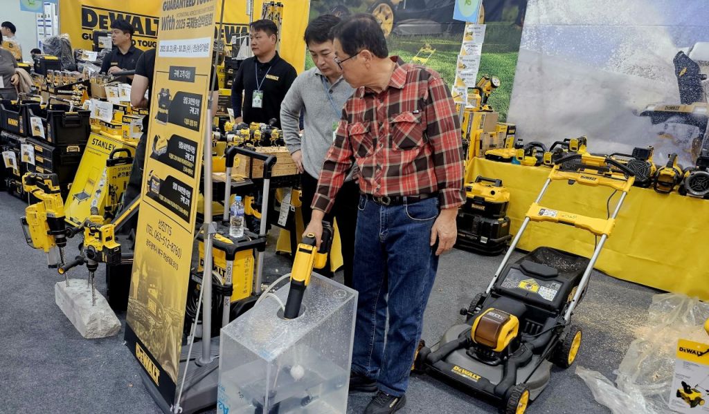 '농업기술관'에 전시된 고압세척기와 제설기 등의 기계를 한 관람객이 직접 작동하며 체험하고 있다. 이준경 기자