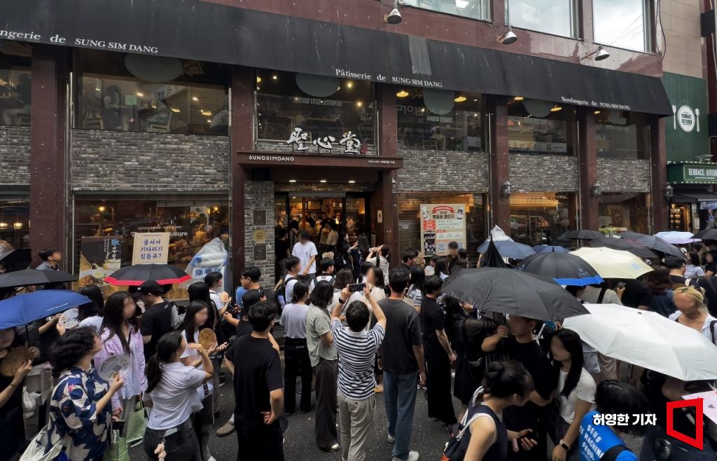 성심당 본점 앞에 빵을 구입하려는 방문객들이 장사진을 이루고 있다.