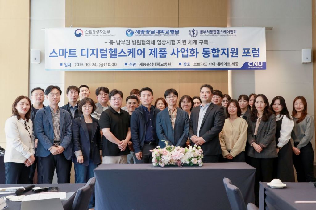 세종충남대학교병원은 코트야드 바이 메리어트 호텔 세종에서 중·남부권 국립대학교병원의 생명연구원 관계자들이 참석한 가운데, 스마트 디지털 헬스케어 제품 사업화 통합지원 사업 설명회 및 포럼을 24일 개최했다.