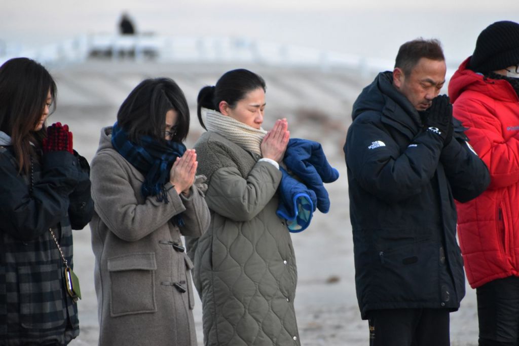 일본 대지진 발생 13주년인 지난해 11일 일본 센다이 주민들이 희생자들을 추모하며 기도하고 있다. 2011년 3월 11일 발생한 규모 9.0 강진으로 2만명 가까운 주민이 사망하거나 실종됐다. 연합뉴스
