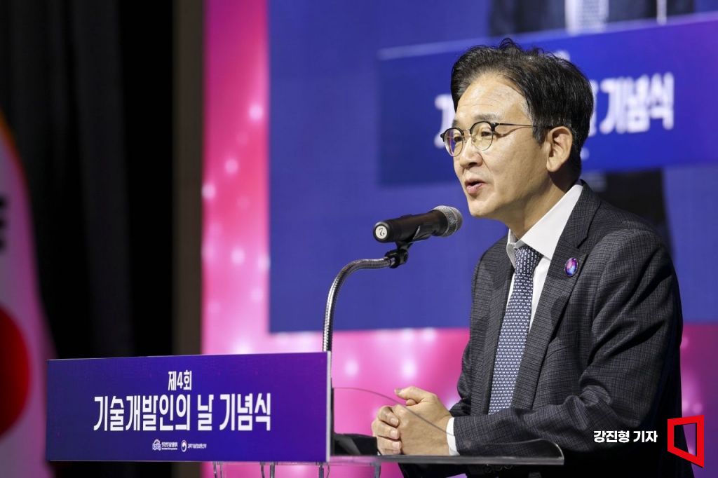 임요업 과학기술정보통신부 과학기술혁신조정관이 24일 서울 여의도 페어몬트 앰배서더호텔에서 열린 '제4회 기술개발인의 날 기념식'에 참석해 축사하고 있다.