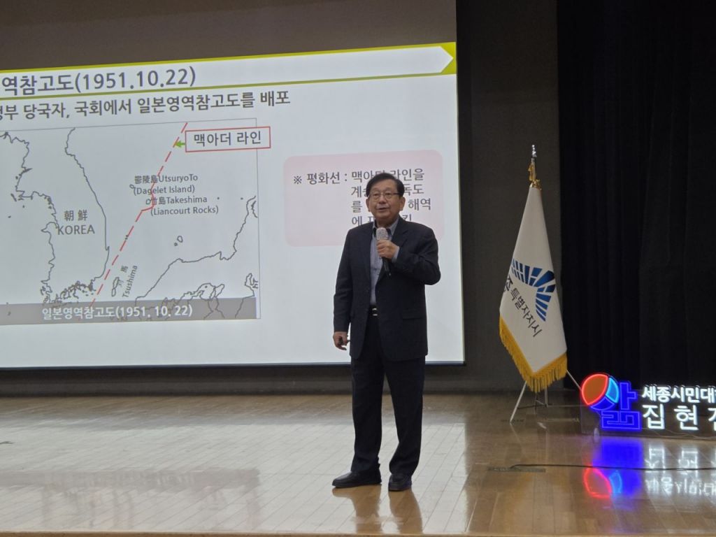 세종시에 따르면 이날 시민과 공직자 300여 명을 대상으로 25일 독도의 날을 맞아 시와 (재) 세종평생교육·정책연구원이 독도 교육 운영 주간의 일환으로, 독도와 관련한 올바른 역사 인식을 확립하고 영토 주권 의식을 강화하기 위해 마련됐다.