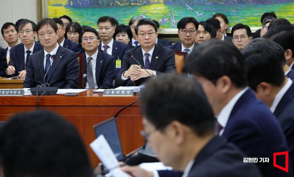 이억원 금융위원장과 이찬진 금감원장이 27일 서울 여의도 국회에서 열린 정무위원회의 금융위원회, 금융감독원 등에 대한 종합감사에서 의원 질의를 경청하고 있다. 2025.10.27 김현민 기자
