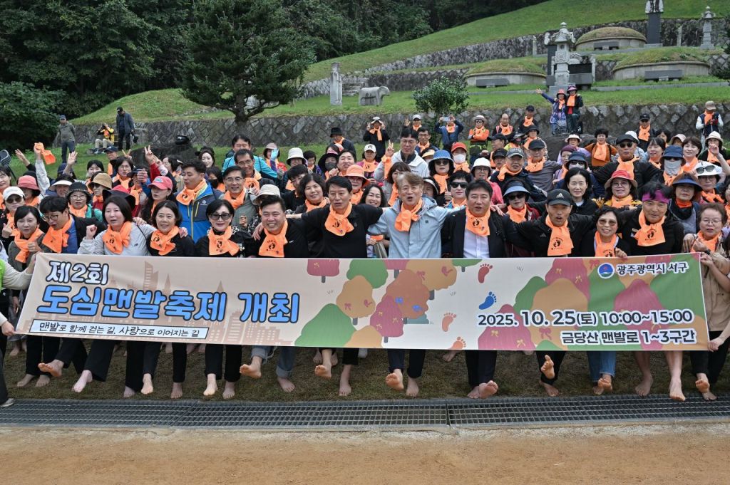 27일 서구에 따르면 지난 25일 풍암동 금당산 일원에서 열린 '제2회 도심맨발축제-걸어서 100세까지 맨발로(路) 함께애(愛)'는 서구의 건강도시 비전을 대표적으로 보여준 행사로, 시민들의 큰 호응을 얻으며 성황리에 마무리됐다.