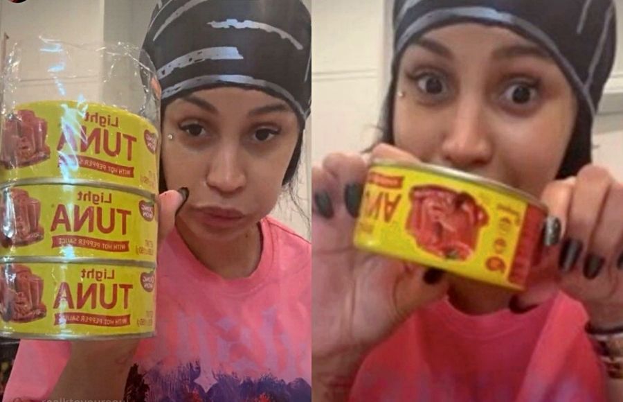 미국 유명 래퍼 카디비가 자신의 인스타그램 라이브방송에서 동원F&B의 고추참치를 소개하고 있다. 카디비 인스타그램
