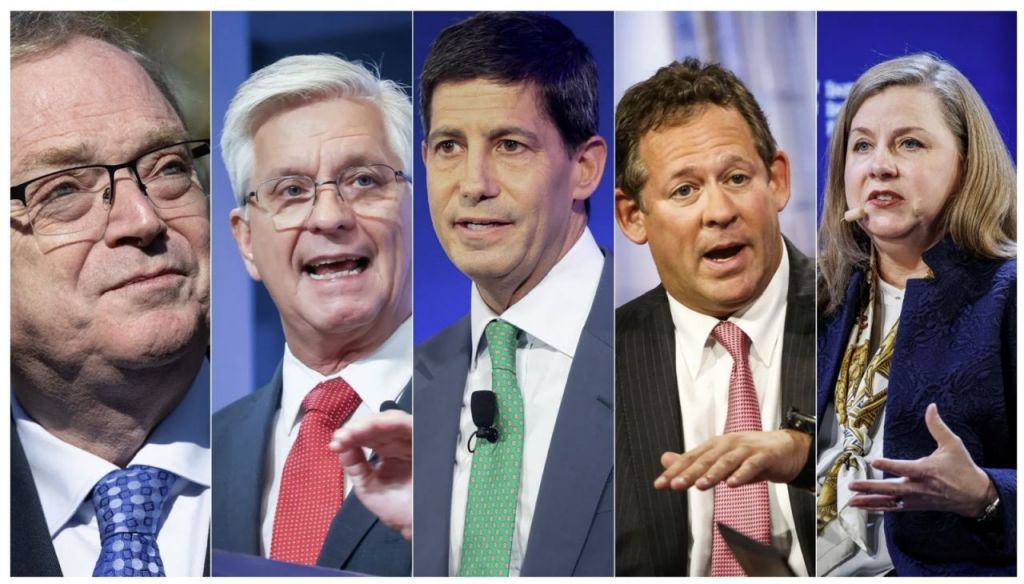차기 미국 연방준비제도(Fed) 의장 후보군. 케빈 해싯 백악관 국가경제위원회(NEC) 위원장, 크리스토퍼 월러 Fed 이사, 케빈 워시 전 Fed 이사, 릭 라이더 블랙록 최고투자책임자(CIO), 미셸 보먼 Fed 부의장(왼쪽부터). 악시오스 제공.