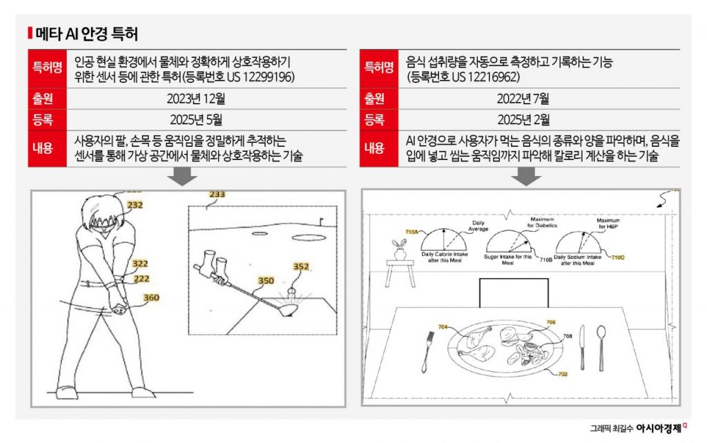 29일 AI 특허 검색 서비스 '키워트'에 따르면 메타는 최근 미국 특허청에 AI 안경을 착용해 가상세계에서 골프와 야구를 즐길 수 있는 기술을 특허출원했다. 메타는 지난달 미국 시장에 AI 안경(메타 레이밴 디스플레이)을 출시하고, 손목에 차는 '뉴럴 밴드'와 함께 799달러 가격에 판매하고 있다.