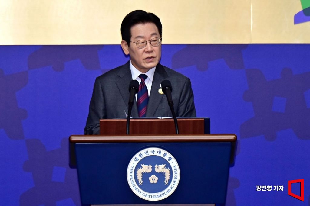 이재명 대통령이 29일 오전 경북 경주 예술의전당 화랑홀에서 열린 2025 아시아태평양경제협력체 최고경영자 서밋(APEC CEO SUMMIT)에서 기조연설을 하고 있다. 2025.10.29 강진형 기자