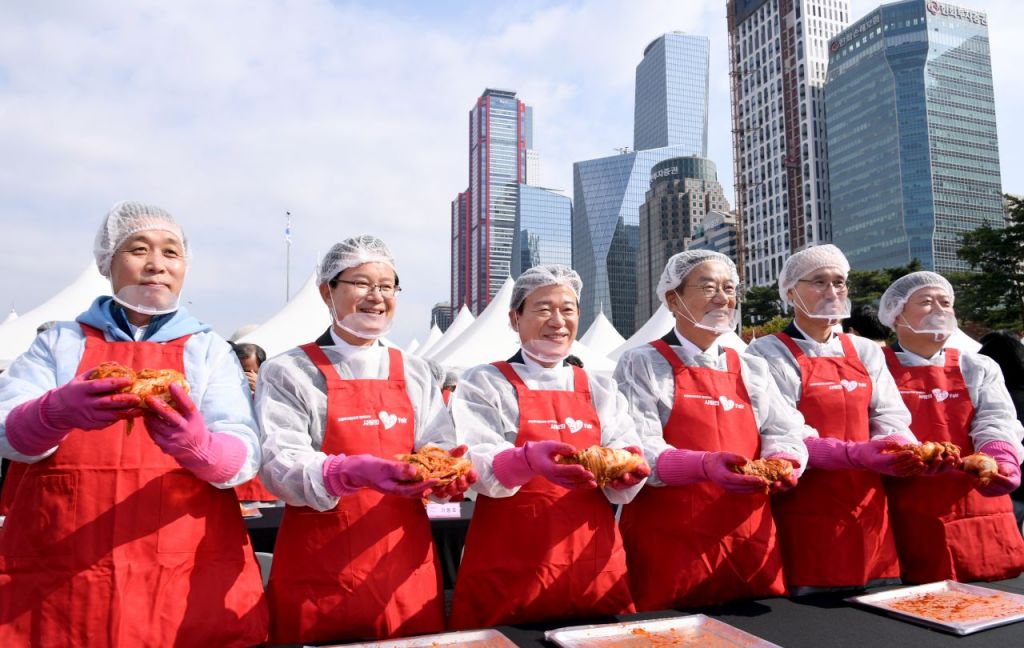 이날 담근 7만4000kg에 달하는 김치는 초록우산 어린이재단을 통해 전국 160여 개 사회복지시설에 전달된다.