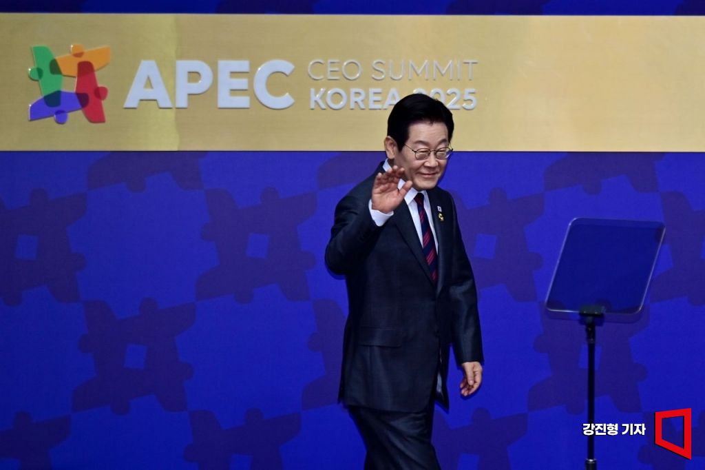 이재명 대통령이 29일 오전 경북 경주 예술의전당 화랑홀에서 열린 2025 아시아태평양경제협력체 최고경영자 서밋(APEC CEO SUMMIT)에서 기조연설을 하고 있다. 2025.10.29 강진형 기자