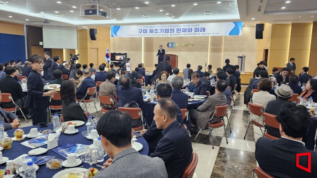 경북 구미상공회의소(회장 윤재호)와 국립 금오공과대학교(총장 곽호상)는 지난 28일 구미상공회의소 2층 대강당에서 윤재호 회장, 곽호상 국립 금오공과대학교 총장을 비롯한 기관단체장, 상공 의원, 회원사 대표 및 임직원, 언론사 등 220여명이 참석한 가운데 '2025 구미상공회의소×국립 금오공과대학교 제조혁신 오픈 포럼'을 공동 개최했다.