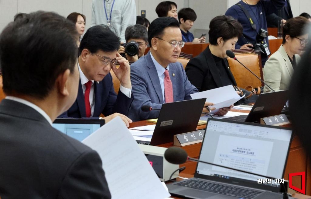 국민의힘은 이날 김 실장을 증인으로 출석시켜 국감 등에서 제기된 의혹 등을 규명해야 한다는 주장을 폈다. 더불어민주당은 이에 대해 정치 공세라고 맞받아쳤다.