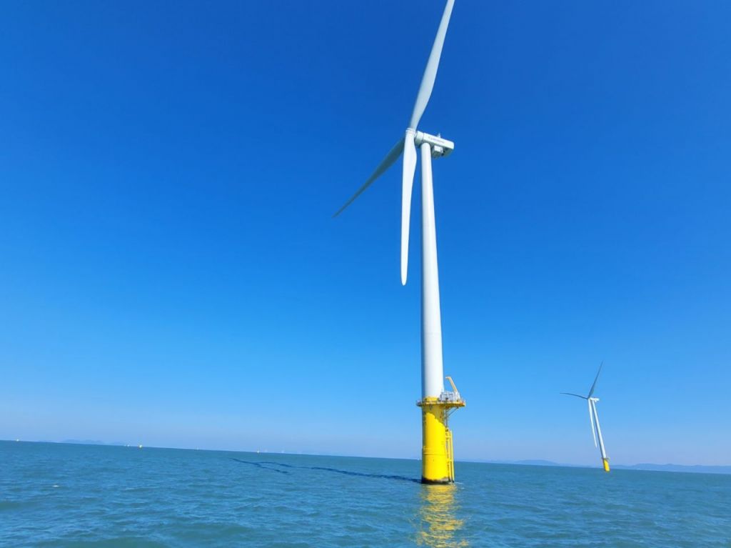 2024년 3월 착공한 낙월해상풍력 발전단지는 현재 모노파일 33기를 해상에 설치한 후 타워와 터빈을 조립하고 있는 단계다.