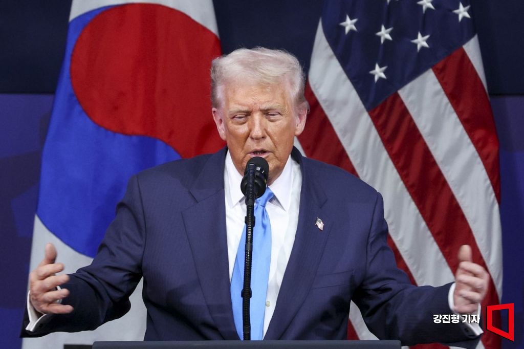 도널드 트럼프 미국 대통령이 29일 경북 경주 예술의전당에서 열린 '2025 아시아태평양경제협력체 최고경영자 서밋(APEC CEO SUMMIT)'에 참석해 정상 특별연설 하고 있다. 강진형 기자