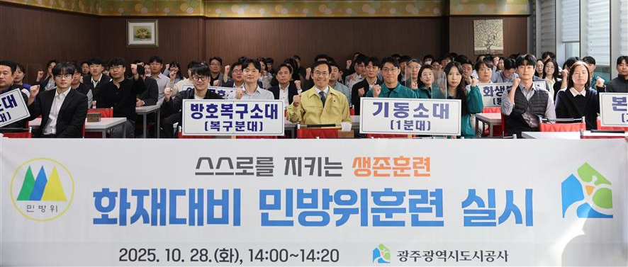 광주도시공사(사장 김승남)는 지난 28일 동절기 화재에 대비한 민방위훈련을 실시했다고 29일 밝혔다. 이번 훈련은 화재 발생 시 전 임직원의 신속한 대피와 대응 역량을 강화하기 위해 마련됐다.