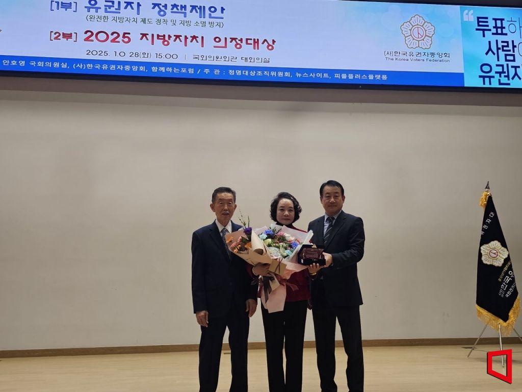 박신영 청송군의원이 한국 유권자중앙회가 주관한 '2025 지방자치 의정 대상'을 수상했다.