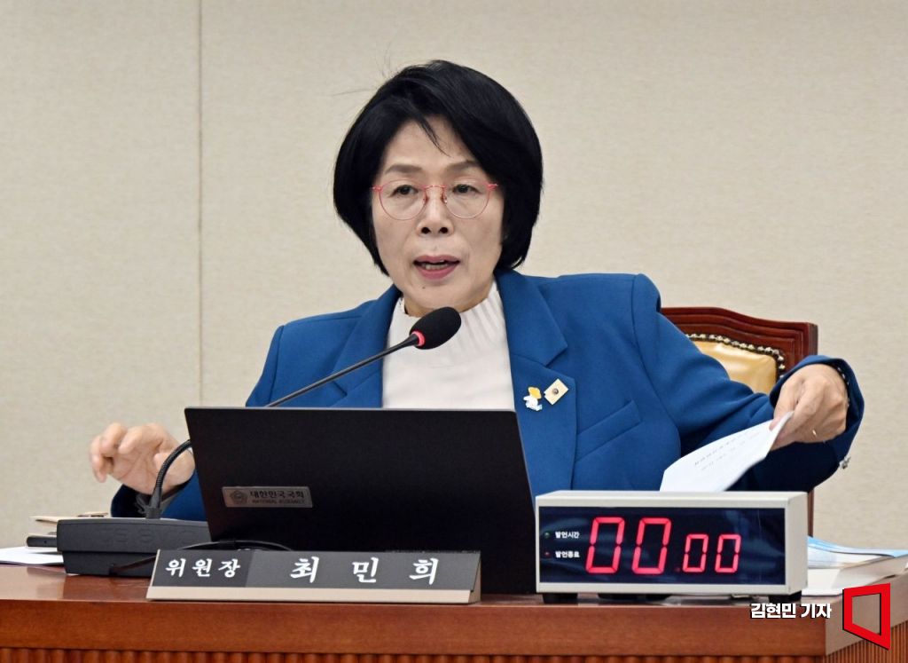 최민희 국회 과방위원장이 23일 서울 여의도 국회 과학기술정보방송통신위원회에서 열린 한국방송공사(KBS), 한국교육방송공사(EBS), 문화방송(MBC) 대주주 방송문화진흥회 등에 대한 국정감사를 주재하고 있다. 김현민 기자