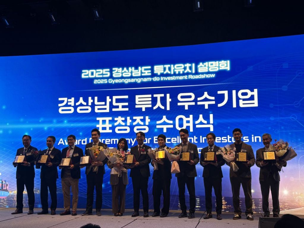 산청군, 2025년 경남도 투자유치설명회 시상식 단체 사진.