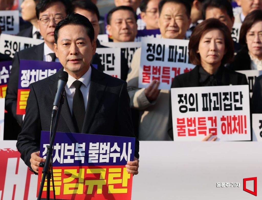 송언석 국민의힘 원내대표도 "야당을 기어이 궤멸시키겠다는 '조작 특검'이 대한민국 민주주의의 숨통을 끊어놓으려 한다"며 가세했다.
