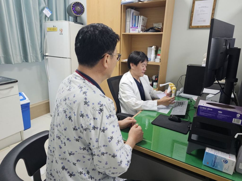 전남대학교병원 공공임상교수로 채용돼 목포시의료원에 파견된 재활의학과 강정중 교수가 환자에게 상태를 설명하고 있다. 전남대학교병원 제공.