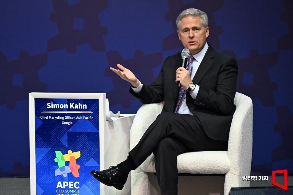 시몬 칸 구글 아태지역 최고마케팅책임자(CMO)가 30일 경북 경주시 경주예술의전당에서 열린 아시아태평양경제협력체(APEC) 정상회의 최고 경영자(CEO) 서밋(Summit)에서 '지속 가능한 혁신을 위한 차세대 AI로드맵'을 주제로 한 패널토론에 참석해 발언하고 있다.