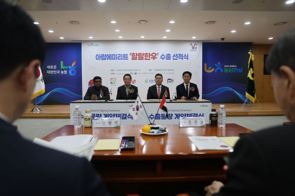 농림축산식품부는 30일 농협중앙회에서 처음으로 UAE에 정식 수출되는 한우고기의 선적기념식을 개최했다고 밝혔다. 한우는 이날부터 인천공항·항만을 통해 냉장·냉동 한우고기 초도물량 약 1.5t이 수출된다.