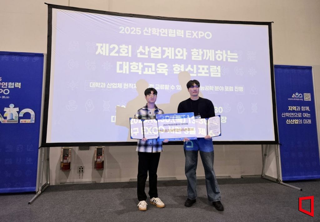 '2025 제19회 학생포트폴리오 경진대회'에서 한국공과대학장협의회장상을 받았다.(좌측부터) 최우진, 김대현 학생/김이환 기자