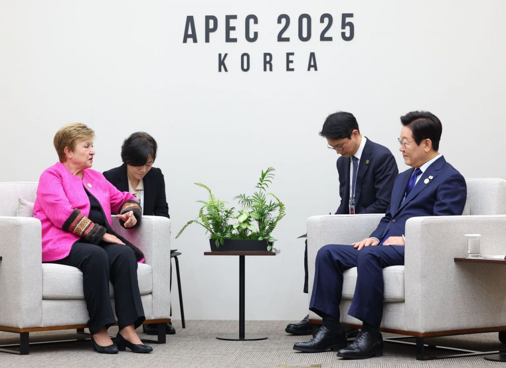 이 대통령은 2025 아시아태평양경제협력체(APEC) 정상회의 참석을 계기로 경주를 방문한 게오르기에바 총재를 접견해 세계 경제와 한국의 경제 전망, 경제정책 방향, 경제성장 전략 등에 대해 논의했다.