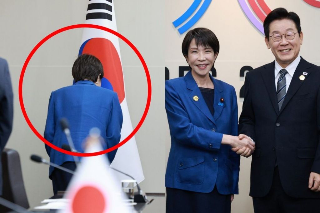 한일 정상회담장에서 다카이치 사나에 일본 총리가 태극기 앞에 고개를 숙여 예를 표하는 모습이 포착돼 화제다. 통상 환영 행사에서 의장대 사열 도중 상대방 국기에 예를 표하는 경우는 종종 있지만, 회담장에서 상대국 국기에 고개를 숙이는 것은 "매우 이례적"이라는 평가다. 특히 '강경 보수'로 구분되며 과거 역사·영토 문제에서 한국을 향한 '매파' 발언을 쏟아냈던 다카이치 총리라 더욱 관심이 집중되고 있다.
