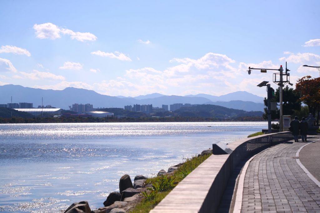 완연한 가을 날씨를 보인 1일 강원 강릉시 저동 경포호에 윤슬이 반짝이고 있다. 연합뉴스 제공