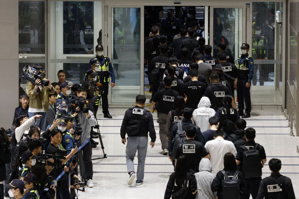 캄보디아 온라인 사기에 가담해 구금된 한국인들이 지난달 18일 오전 인천국제공항 제2터미널을 통해 송환되고 있다. 연합뉴스