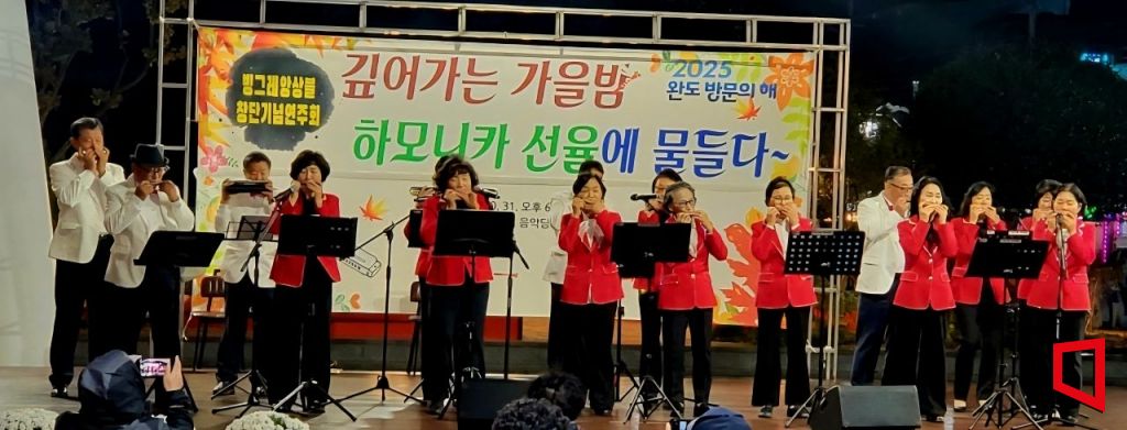 전남 완도 지역 최초의 하모니카 앙상블인 '완도 빙그레 앙상블' 공연팀이 창단 1주년을 맞아 깊어가는 가을밤, 잔잔한 감성의 무대를 선사했다.