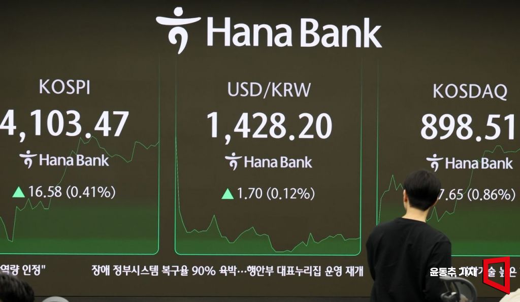 31일 코스피 지수가 하락 출발 후 반등에 성공하면서 최고치 경신에 다시 한번 도전하고 있다. 서울 중구 하나은행 딜링룸 현황판에 각종 지수와 환율이 표시되고 있다. 2025.10.31 윤동주 기자