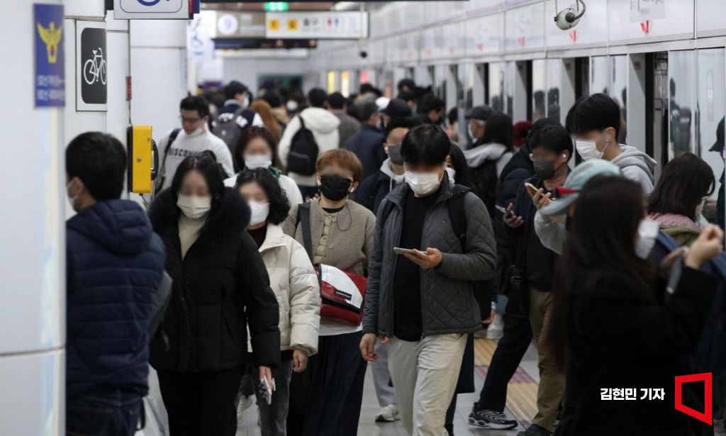 서울 지하철 여의도역 승강장에서 마스크를 착용한 시민들이 발걸음을 옮기고 있다. 사진은 기사의 특정 내용과 관련 없음. 김현민 기자