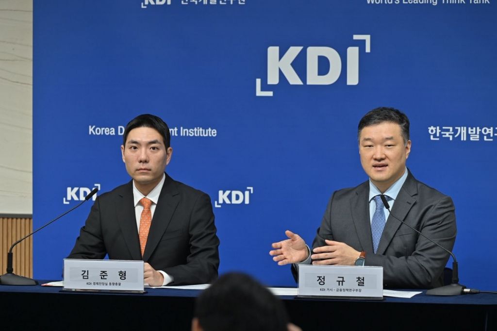 김준형 KDI 경제전망실 동향총괄과 정규철 KDI 거시·금융정책연구부장이 4일 정부세종청사에서 '해외투자 증가의 거시경제적 배경과 함의' 주제의 KDI 현안분석을 발표하고 있다. KDI 제공