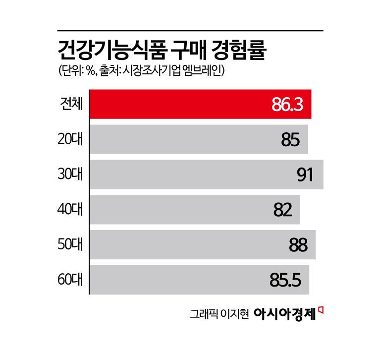 성인 10명 중 8명 이상이 건기식을 건강과 자기관리를 위한 투자로 인식하는 것으로 나타났다. 중년층의 전유물로 여겨지던 건강기능식품이 전 세대를 아우르는 '소비 트렌드'로 자리잡는 모습이다.