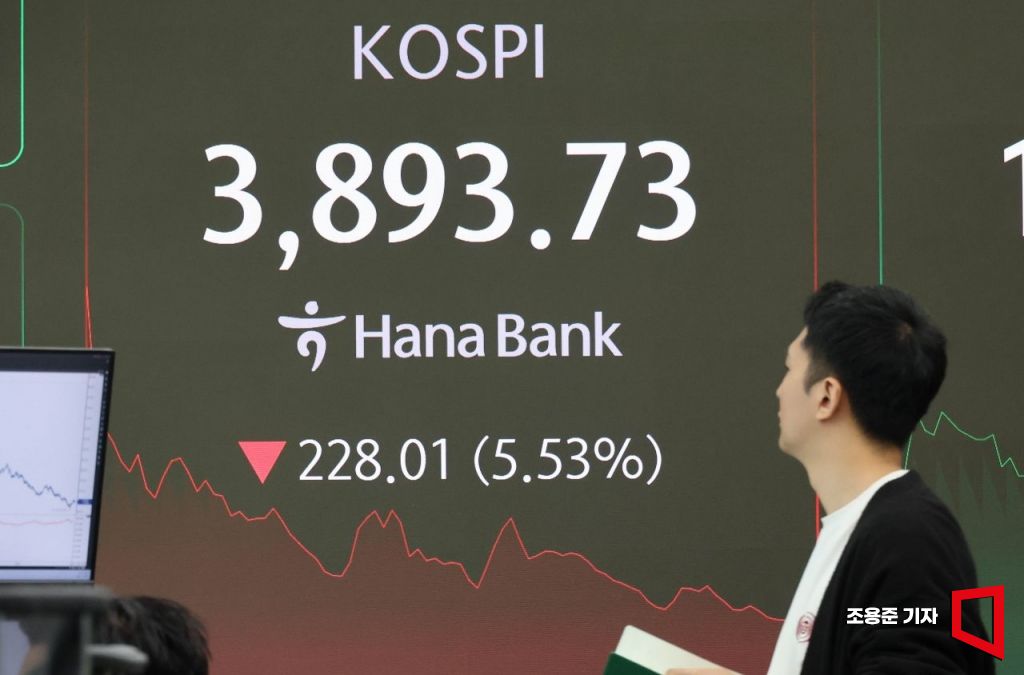 5일 서울 중구 하나은행 딜링룸 현황판에 코스피, 코스닥 등이 표시돼 있다.
