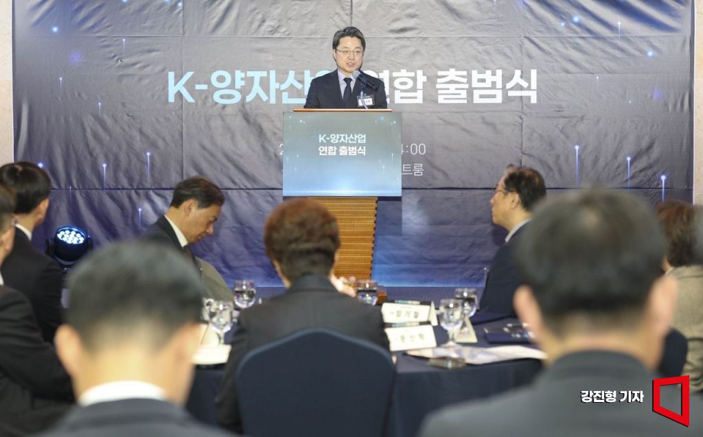 문신학 산업통상부 1차관이 5일 서울 중구 롯데호텔에서 열린 'K-양자산업연합 출범식'에 참석해 개회사 하고 있다.